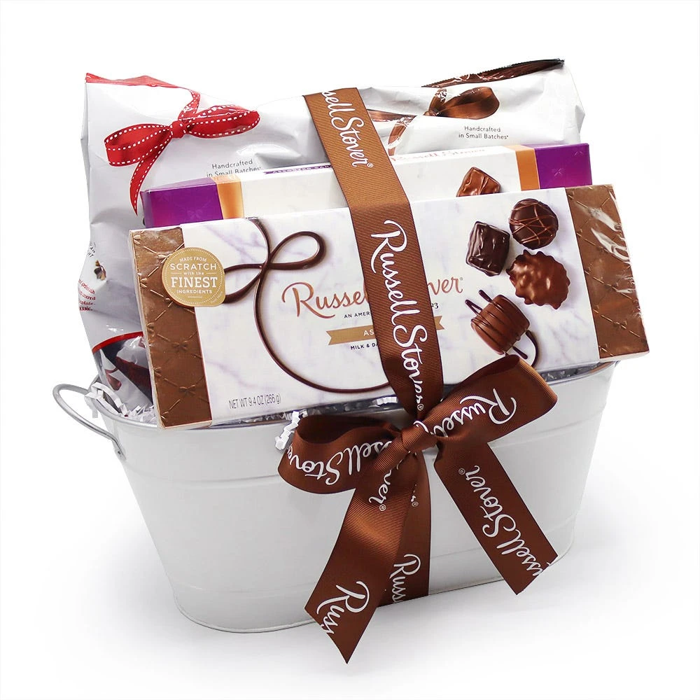 Gift arrives wrapped in clear wrap, tied with an attractive bow. Tin and bow style may vary slightly from what you see here.