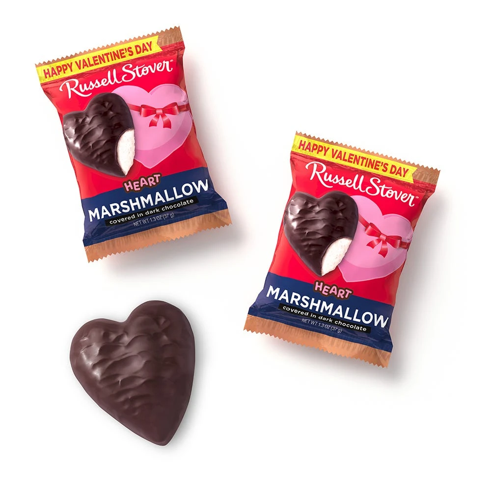 Sweet marshmallow goes a long way when covered in rich dark chocolate. Shaped like a Valentine Heart, these hearty indulgences are perfect for classroom and office parties, candy dishes, or secret stashes..