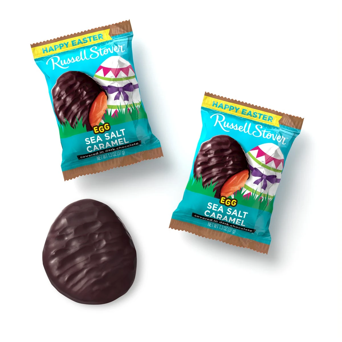 Dark Chocolate enrobes a rich, buttery, gooey caramel and a pinch of salt is added to enhance the complex flavors. Shaped like an Easter Egg, these hearty indulgences are welcome additions to a candy dishes and Easter baskets.