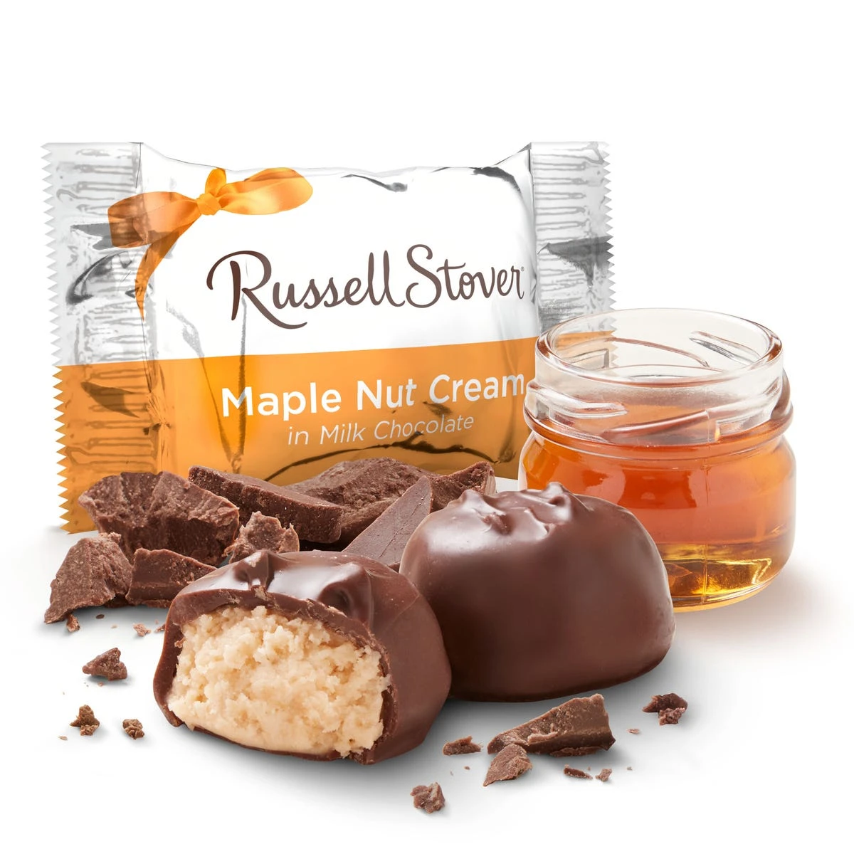 Delicious maple flavored cream and savory walnuts smothered in milk chocolate