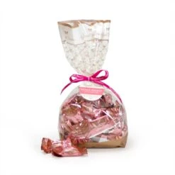 24 oz. of delicious roman nougat individually wrapped candies that feature a chewy center made with cherries and nuts enrobed in sweet milk chocolate.