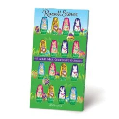 These bite-size milk chocolate bunnies are just right for hiding … tucking into Easter baskets … slipping into backpacks. Box includes 16 brightly wrapped solid milk chocolate bunnies.
