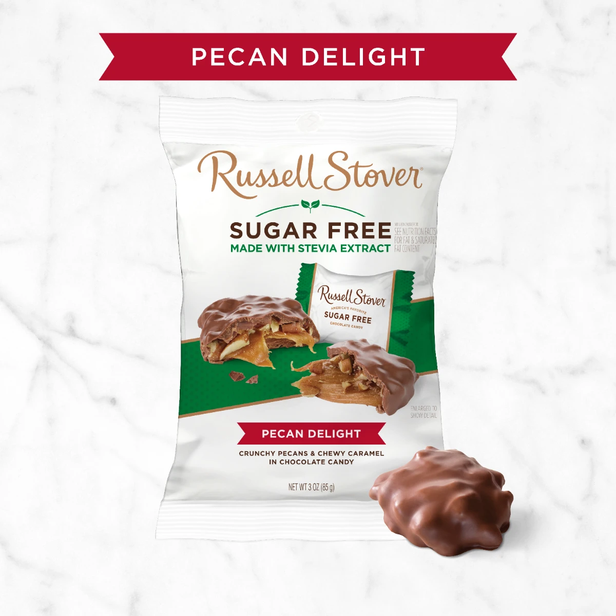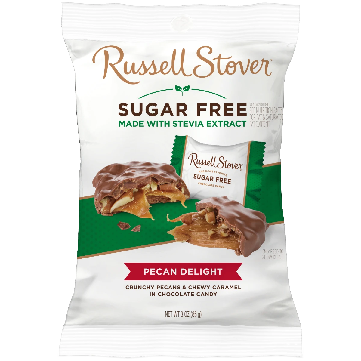 Satisfy a candy craving with these Russell Stover treats. Bite-sized sugar-free versions of the classic pecan favorites these Sugar-Free Pecan Delights offer the enjoyable flavors of crunchy pecans buttery caramel and fine chocolate candy. For those who want a taste of pecan these made with Stevia Extract candies are the perfect after-dinner snack.