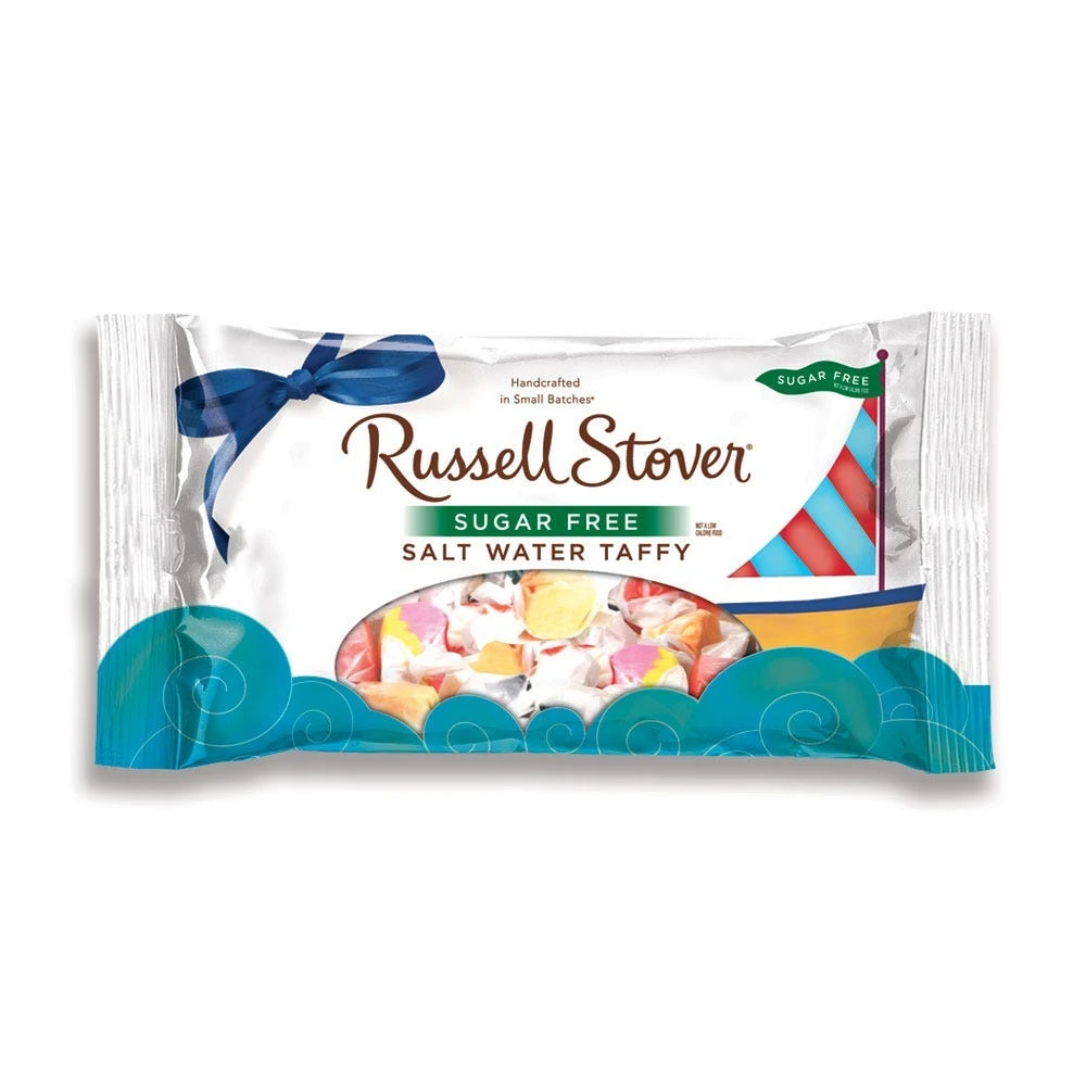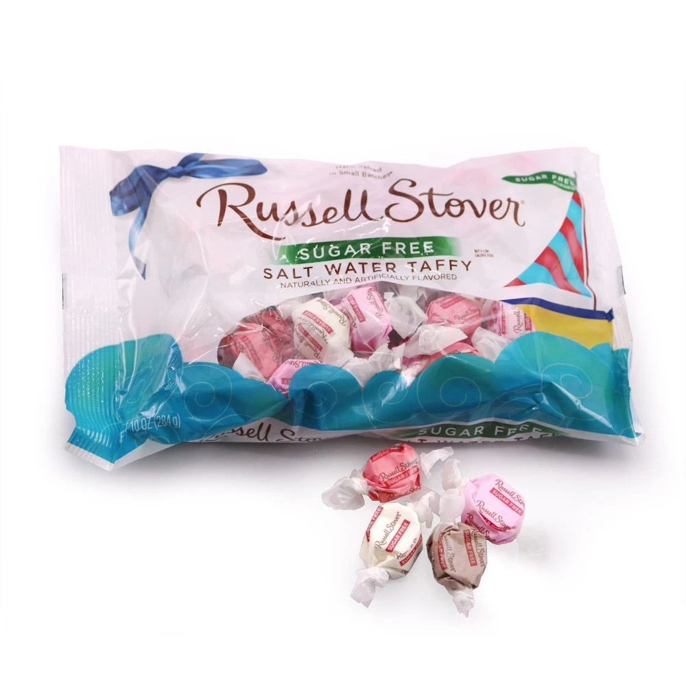 Enjoy the taste of salt water taffy without any guilt. A bag of Sugar Free Russell Stover Salt Water Taffy provides an assortment of flavors. Each candy contains sugar alcohol the sugar substitute that makes the taffy sweet.