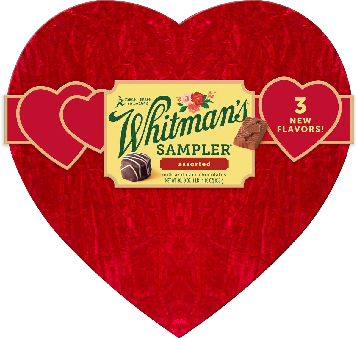 Beautiful red velvet Valentine’s Chocolate Heart full of Whitman’s favorite flavors.